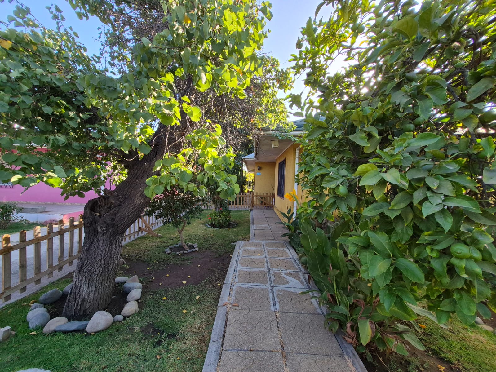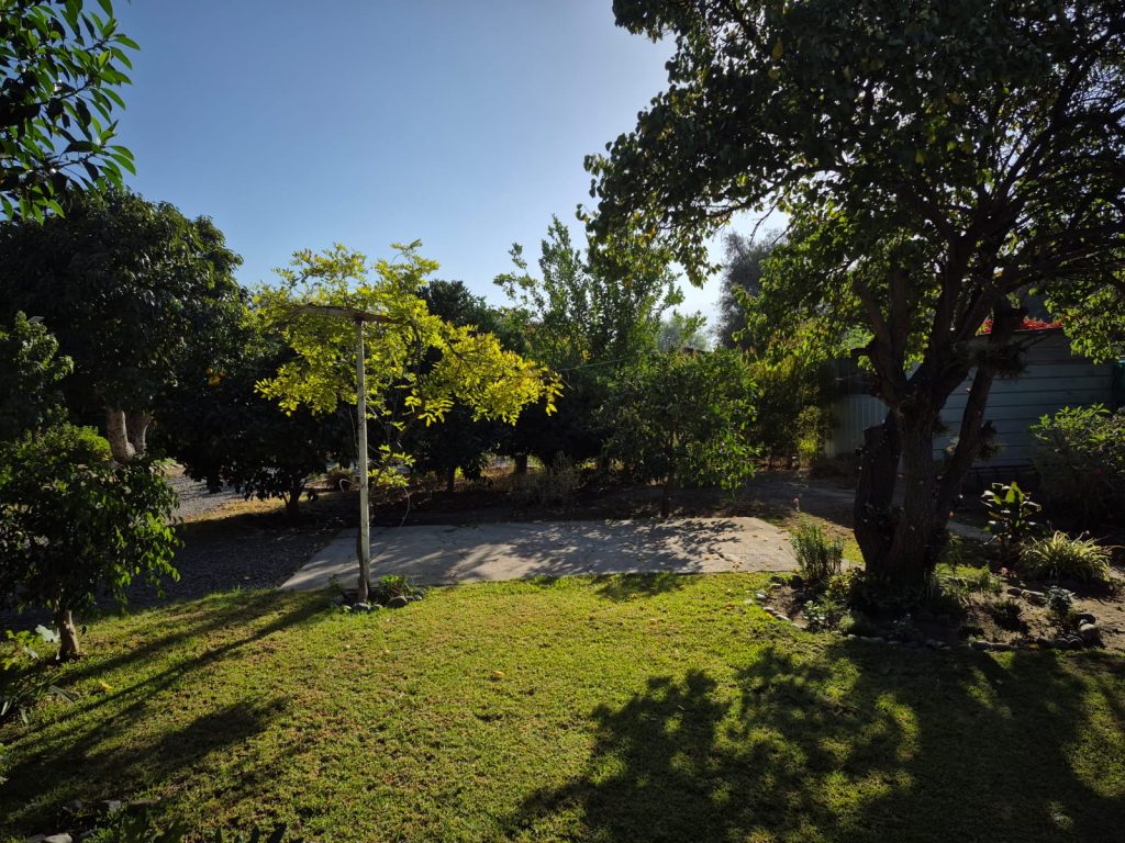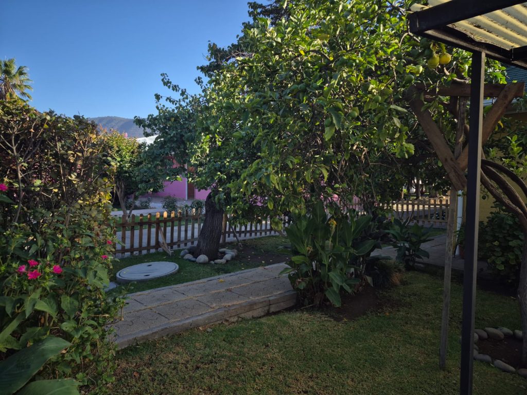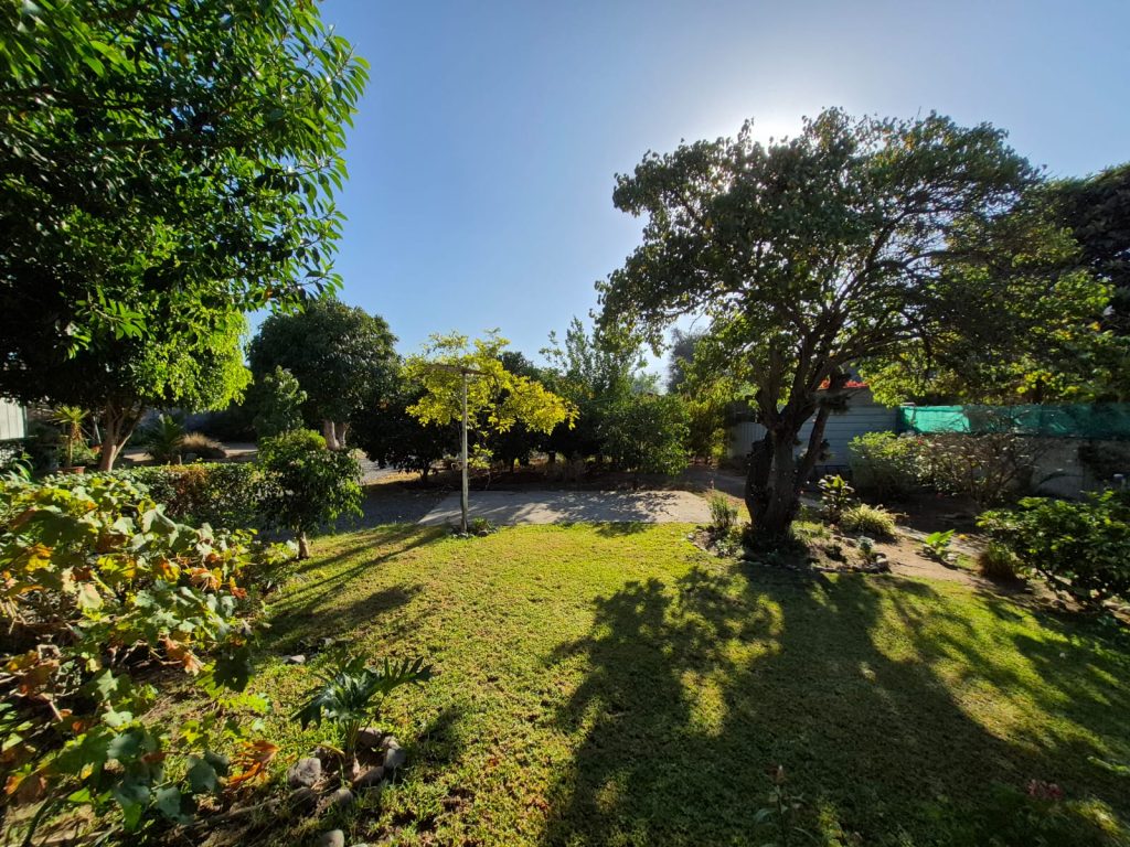 Árboles frutales y variedad de plantas.